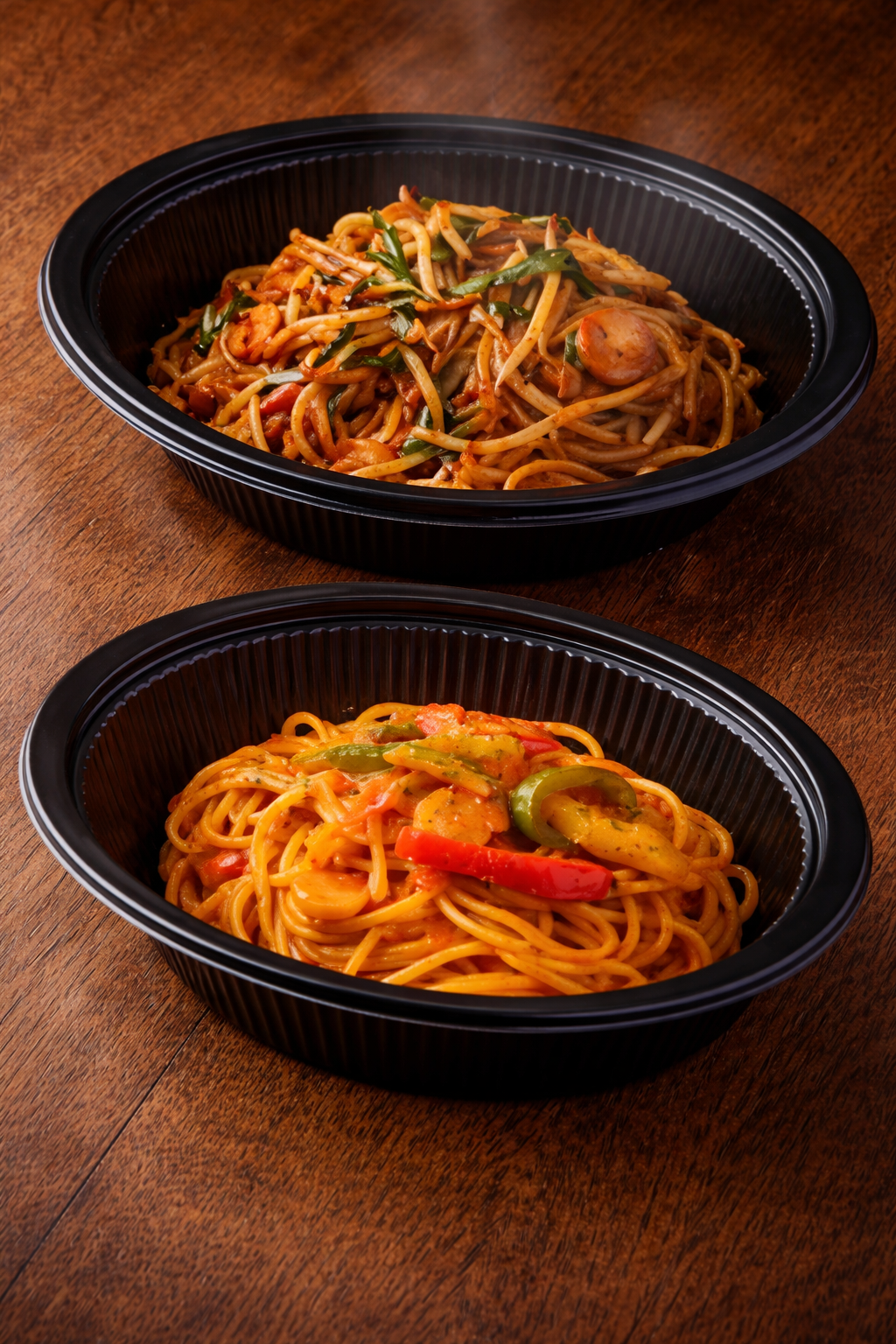 『漆黒の極太ソース焼きそば大盛り』と『ナポリタン大盛り』のお得なセットです。